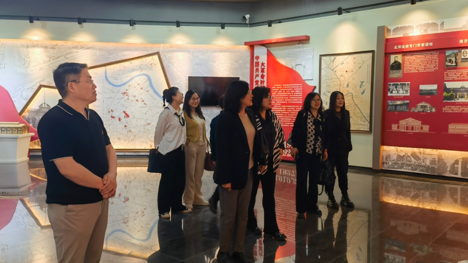随后,在马克思主义学院领导班子陪同下,兰州城市学院一行分别参观了校内思政课实践基地—“革命丰碑--天津市红色旧址展览”和中华传统文化体验中心暨古琴弦歌基地,了解我校挖掘天津市红色文化资源和以古琴弦歌为代表的中华优秀传统文化资源,推动思政课教学改革创新,构建大思政格局的建设成果和经验做法。