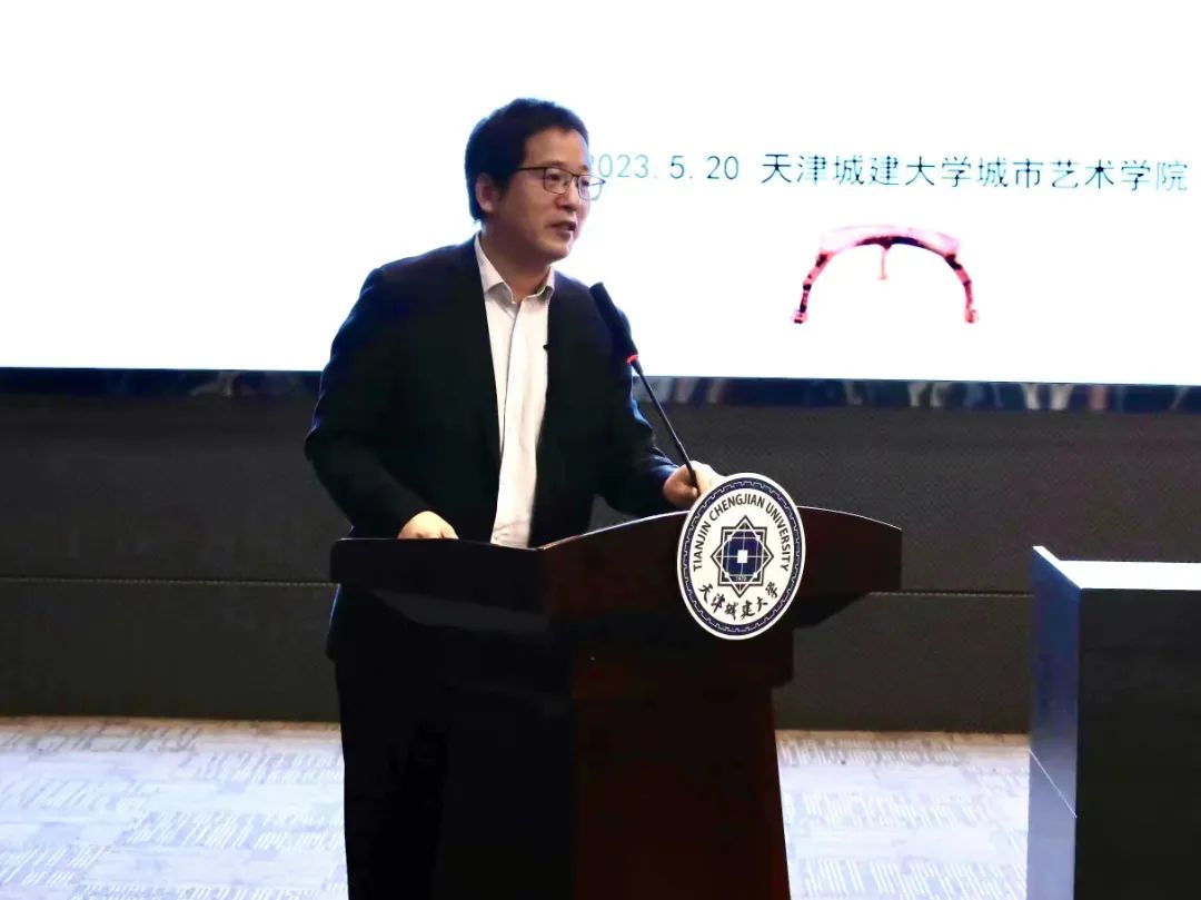 本次学术交流活动由天津城建大学、天津市城市艺术研究会主办,邀请东华大学服装与艺术设计学院陈庆军教授、天津大学建筑学院张龙教授、南京师范大学美术学院吴振韩教授、天津理工大学艺术学院刘卓教授、清华大学美术学院王小茉副教授、南京师范大学美术学院顾媛媛副教授以及我校城市艺术学院杨艳红教授参会。