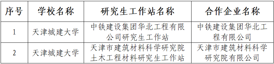 天津城建大学2022年天津市产教融合研究生工作站建设名单