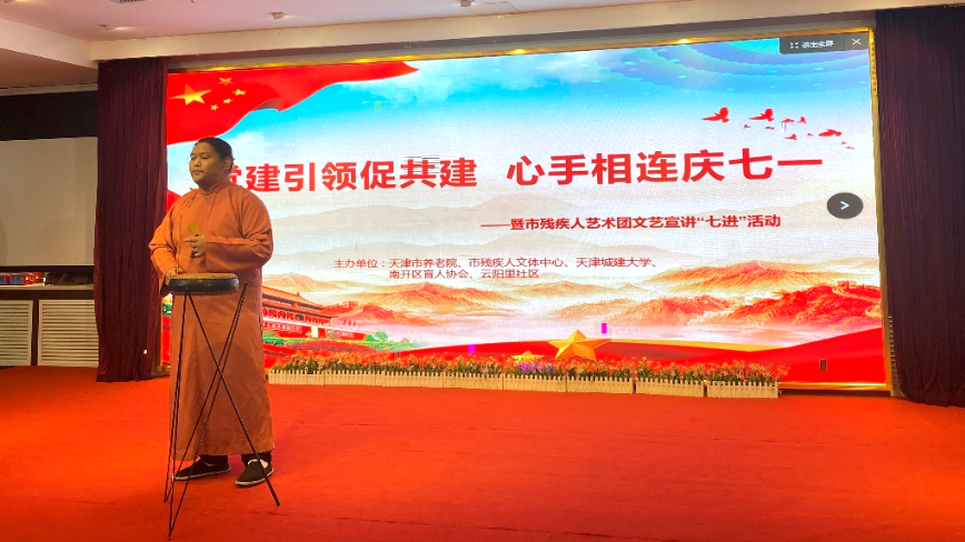 为丰富老年人的文化生活,提高老年人的幸福指数,讴歌党的光辉历程,营造爱党爱国爱社会主义的浓厚氛围,弘扬志愿服务精神,6月20日上午,天津城建大学志愿者与天津市养老院、天津市残疾人艺术团、南开区云阳里社区共同举办了“党建引领促共建,心手相连庆七一”文艺汇演。