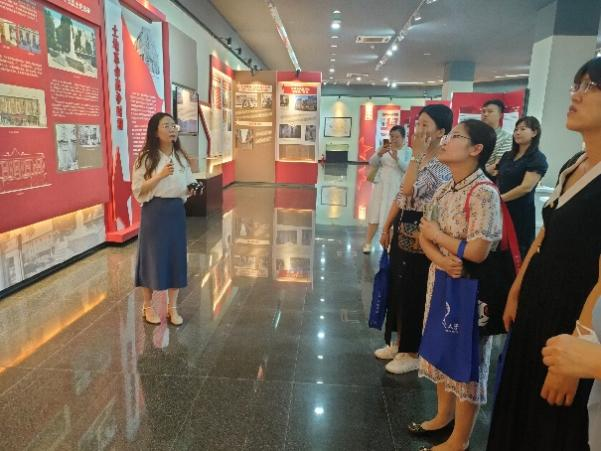 在实践教学环节,参训教师先后赴我校“革命丰碑—天津市红色旧址展览”、工程实训中心及天津市盘山烈士陵园三地参加现场教学和学访交流。在“革命丰碑—天津市红色旧址展览”,马克思主义学院周乔和周淮娇两位青年教师为参训教师深情讲解,生动展现了从革命遗址到建筑风格、从革命环境到新时代天津转型腾飞的天津百年党史的历史画卷。