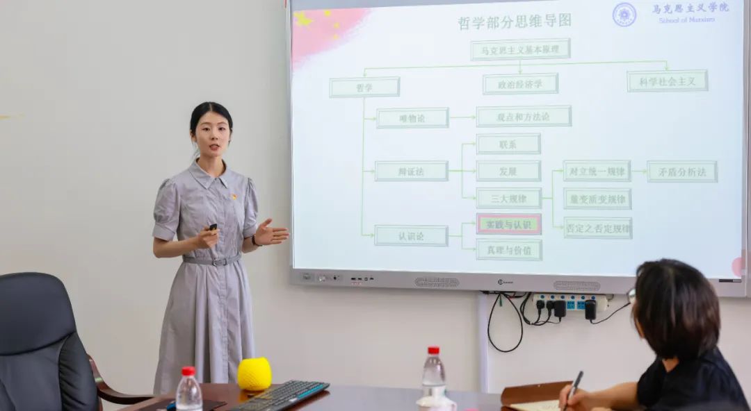 中国近现代史纲要教研室杨贺副教授以《为什么说中国共产党是中华民族抗日战争的中流砥柱?》为题开展了集体备课,他围绕砥柱山巍、稳、硬的特征,从“顶天立地、指引方向”“风吹雨打、岿然不动”“千磨万折、百炼成钢”三个方面深刻阐述了为什么说中国共产党是中华民族抗日战争的中流砥柱,充分展示了我校思政课教师坚持“八个相统一”精心打磨课程的成果。