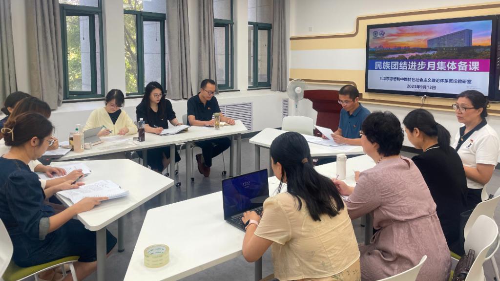 校党委将铸牢中华民族共同体意识纳入形势与政策开学第一课授课内容,于9月28日通过超星平台面向全体在校生播放。马克思主义学院各教研室分别开展集体备课活动,将铸牢中华民族共同体意识教育融入课堂教学体系。