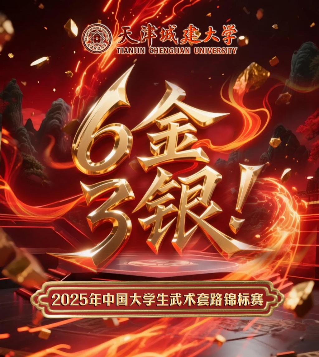 2025年7月27-31日,由中国学生体育联合会主办,中国学生体育联合会大学武术分会执行,天津市武术协会承办的2025年中国大学生武术套路锦标赛在天津市武清区盛大举行,来自全国各地241所高校的2000余名运动员、教练员齐聚一堂,共同参与这场武术盛会,参赛人数创历史新高。经过激烈角逐,我校武术健儿首获佳绩,勇夺6金3银。