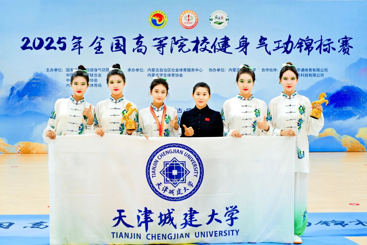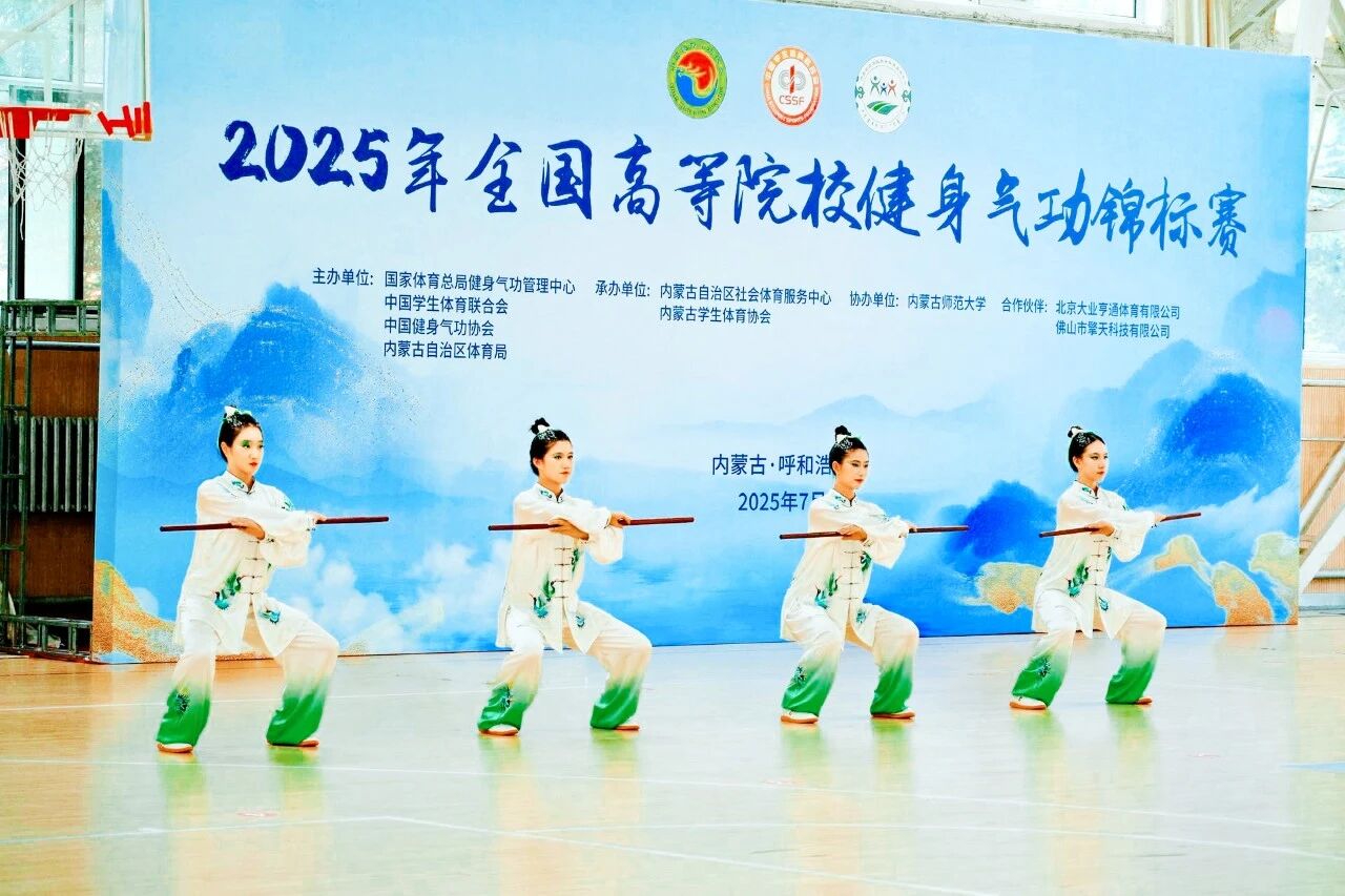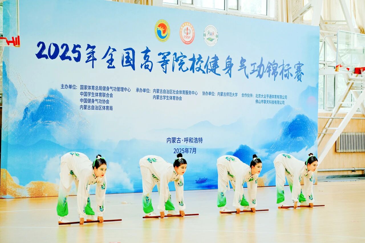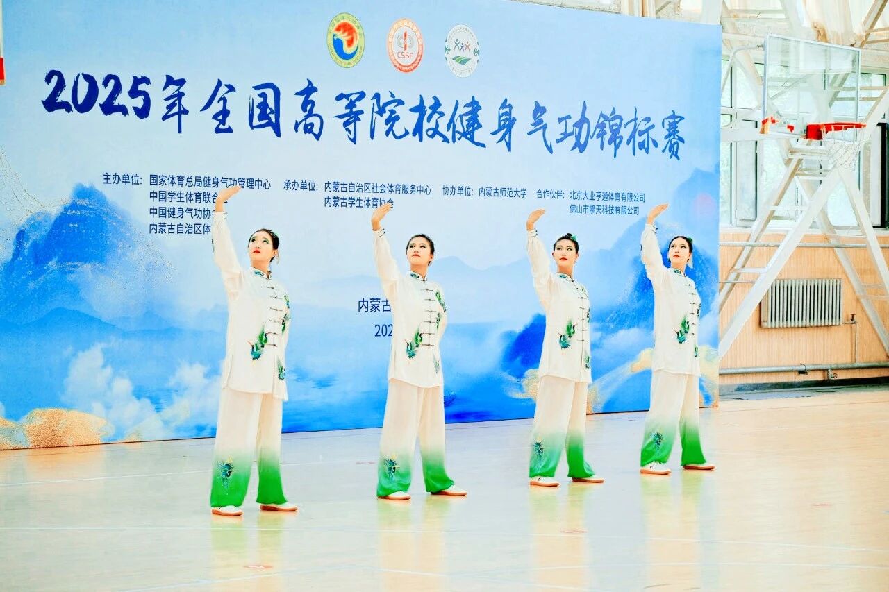 近日,全国高等院校健身气功锦标赛在内蒙古自治区呼和浩特市内蒙古师范大学赛罕校区举行。本届赛事人数规模创历史新高,共有来自全国29个省市区、300余支高校代表队的千余名选手参赛。我校健身气功队表现出色,荣获集体赛一等奖2项、个人赛一等奖2项、二等奖3项,教工组个人赛一等奖1项。