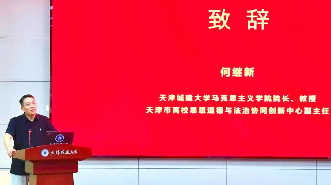 会上,我校马克思主义学院院长、天津市高校思想道德与法治协同创新中心副主任何继新致欢迎辞,向参加此次活动的专家、学者和老师们表示热烈欢迎和衷心感谢。他表示,面对数字化浪潮,大中小学思政课一体化建设面临着前所未有的机遇与挑战,我们必须要紧紧抓住数字化转型这一关键环节,以数智化赋能“大思政课”建设。通过运用大数据、人工智能等数字技术助推思想道德与法治课全方位改革创新,探索数智化背景下思政课课上课下协同、校内校外一体、线上线下融合的协同育人机制,深化数字技术与思政课创新性融合,提高思政课教师数字能力素养,持续提升思政课育人效能。