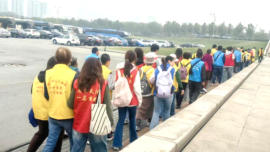 活动当天清晨,天城大志愿者服务队的师生们早早来到各个接站口等候视障朋友们的到来。志愿者们主动迎上前,以温和的语调进行自我介绍,伸出手臂提供支撑。一句“您放心,今天我全程陪您逛科技馆”的暖心承诺,不仅迅速拉近了彼此的距离,也有效缓解了视障朋友初到陌生环境的不安与紧张。