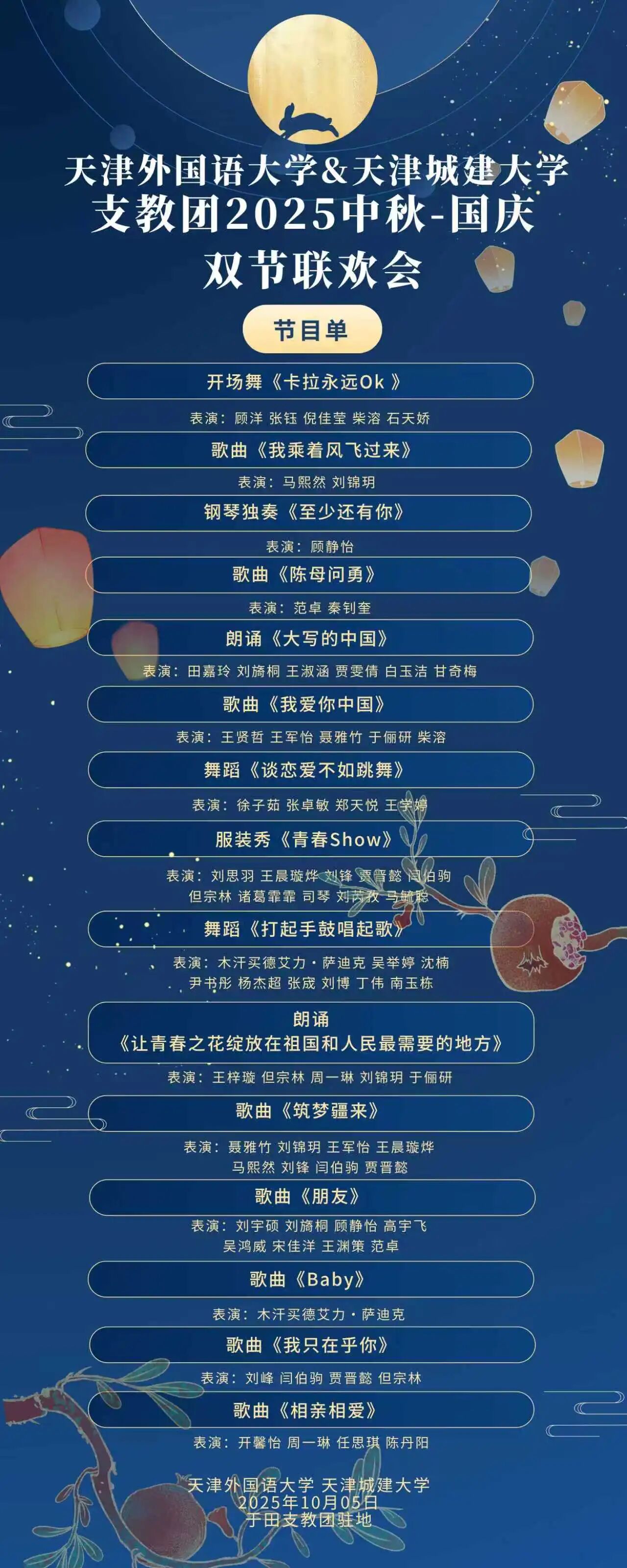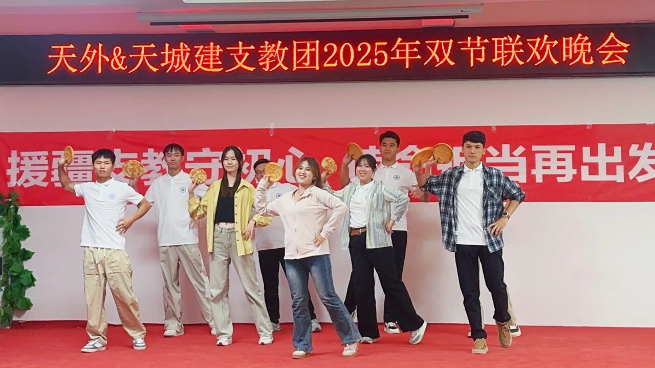 中秋月圆夜,我们与天津外国语大学支教团师生携手举办了一场温暖的“双节联欢晚会”。舞台中央,“援疆支教守初心,使命担当再出发”的横幅格外醒目。