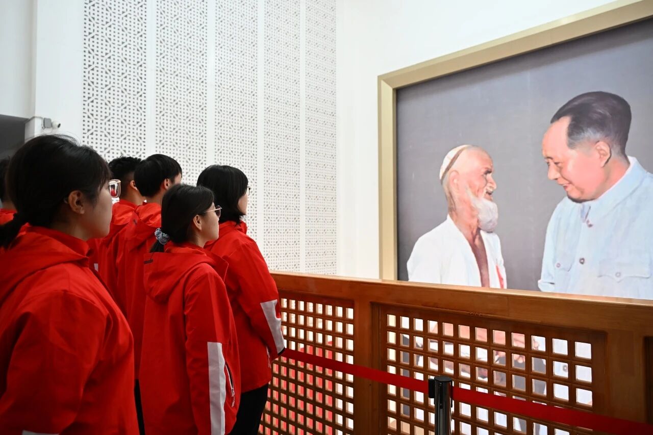 去库尔班大叔纪念馆那天,阳光正好。玻璃展柜里,那件打着补丁的旧棉袄、那把磨得发亮的坎土曼,还有那张泛黄的“骑着毛驴上北京”的老照片,都在静静讲述着一位维吾尔族老人对党、对祖国的赤诚。