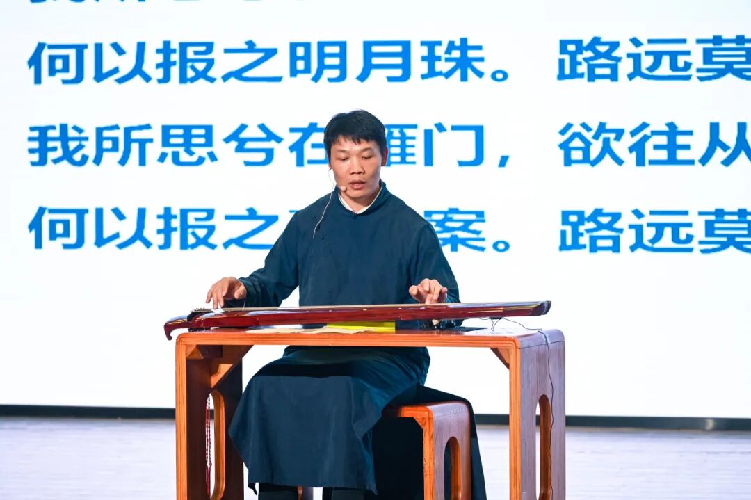 本次大会举办三场高水平古琴弦歌展演——“薄克礼教授琴歌打谱与创作音乐会”“第四届中国(古琴)弦歌与诗词吟唱艺术展演”及“中国古琴弦歌名家名曲音乐会”,节目展演形式多样、名家荟萃、精彩纷呈。从《诗经·木瓜》《兵车行》等“古曲新声”,到《将进酒》《枉凝眉》的经典演绎,再到名家们带来的《沧江夜雨》等绝妙琴音……为观众呈现了一场精彩的视觉听觉盛宴