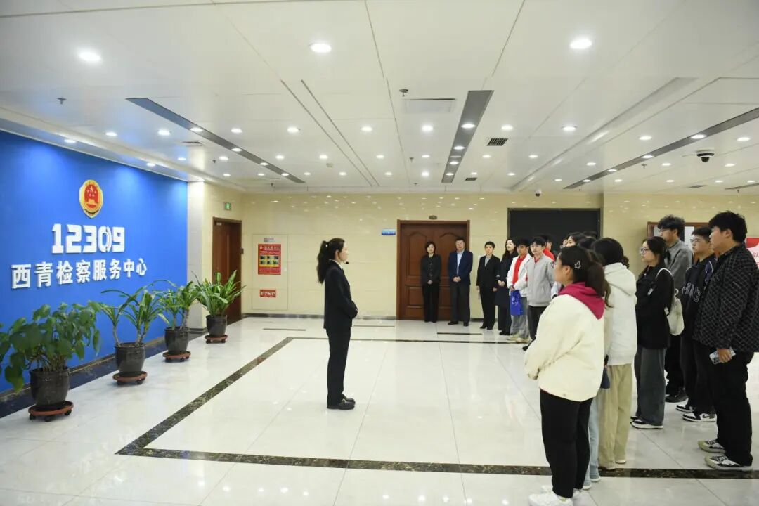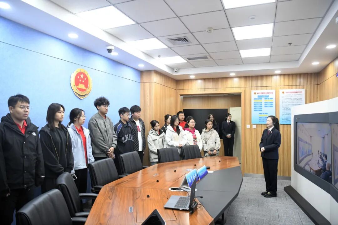 活动采用了“走出去+沉浸学”的创新模式,将法治课堂“搬进”检察院。组织师生实地参观12309检察服务中心、新媒体工作室、公益诉讼工作室等核心办案区域,让学生们得以零距离感受庄严的法治氛围,亲身了解真实的检察工作。这种身临其境的体验,将法律理论转化为生动鲜活的实践认知,变被动的灌输为主动的感知,极大地提升了法治宣传活动的吸引力和教育实效。
