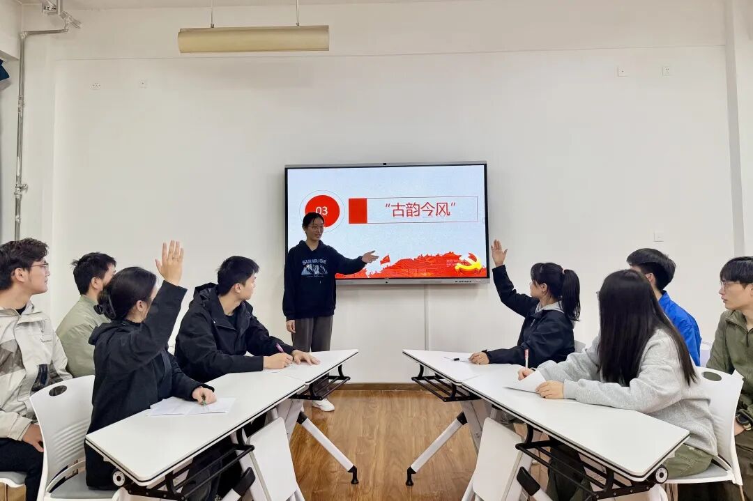 班会特别设置“古韵今风”互动环节,通过临摹古代判案文书书法模板、对比《唐律疏议》与现代民法典关于诚信原则的规定,以传统文化为载体,引导学生感受中华法律文化、法治文明的历史延续性与创新性发展。