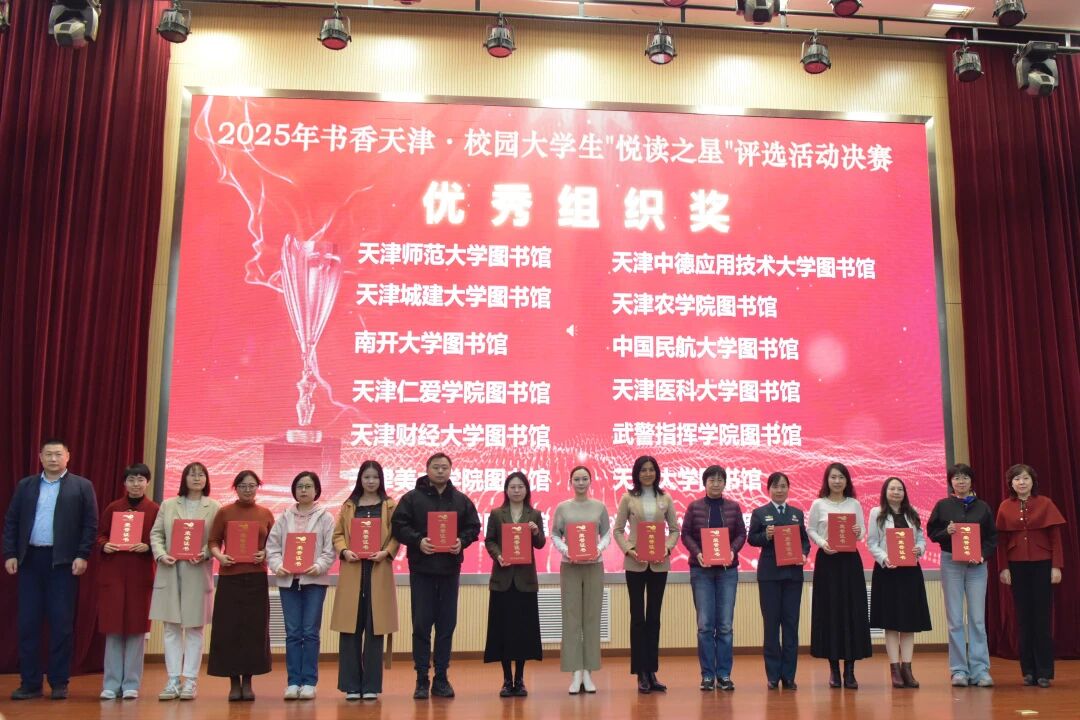 近日,2025年书香天津·校园大学生“悦读之星”决赛在天津师范大学举办。我校校内选拔赛一等奖获得者国际工程学院2024级风景园林专业的单雯琪同学获得市级总决赛二等奖,我校图书馆获评“最佳组织奖”。
