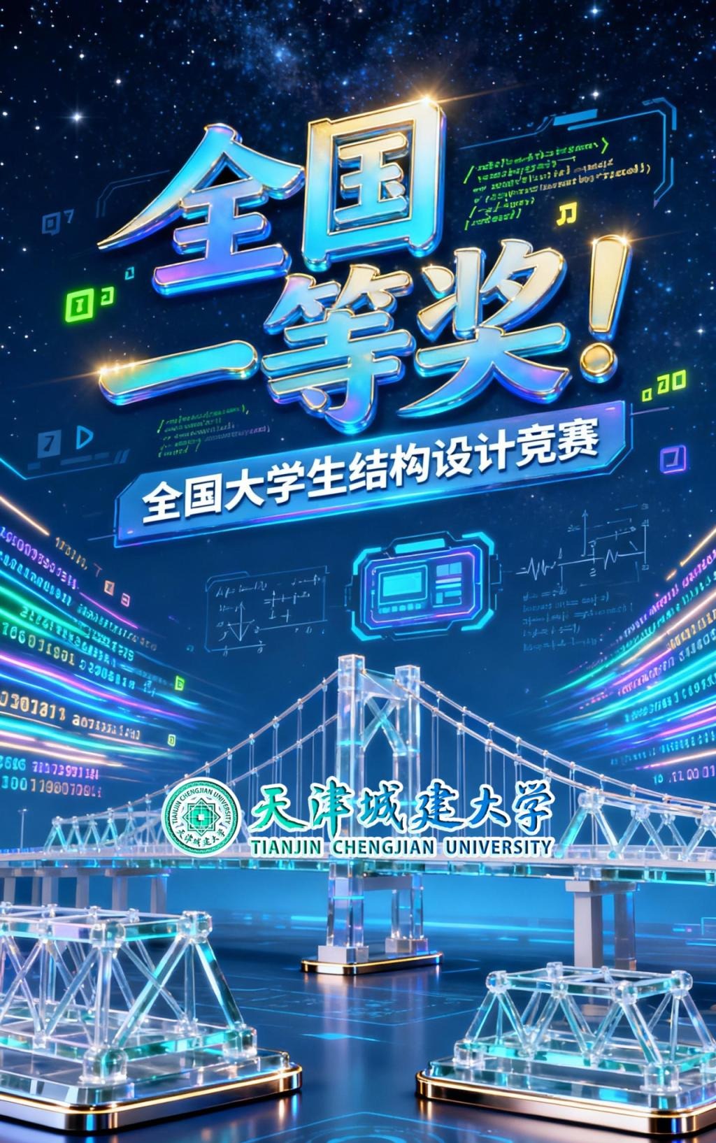 近年来,我校土木工程学院构建“一赛三融两促”特色培养模式,在“挑战杯”“结构设计竞赛”等国家级赛事中屡创佳绩。此次获奖不仅是师生团队技术攻坚的胜利,更是学校深化实践教学改革、培育“敢闯会创”新时代工程师的又一标志性成果。未来,学校将继续以高水平学科竞赛为重要抓手,持续深化“新工科”建设内涵,推动科技创新与育人机制深度融合。着力培养更多具备创新精神和实践能力的复合型应用人才,为建设现代化强国贡献天城大智慧与力量。