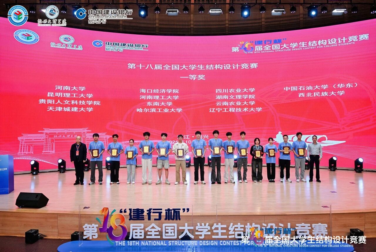 近日,在浙江绍兴举办的“建行杯”第十八届全国大学生结构设计竞赛落下帷幕。我校土木工程学院崔金涛副教授、刘中宪教授指导,杨长烨、曲思翰、马渊三名同学组成的参赛团队以卓越的表现,在清华大学、浙江大学、同济大学等全国121所高校的顶尖队伍中突出重围,斩获全国一等奖,为学校赢得荣誉,再次彰显出我校在土木工程领域的教学创新与人才培养成效。