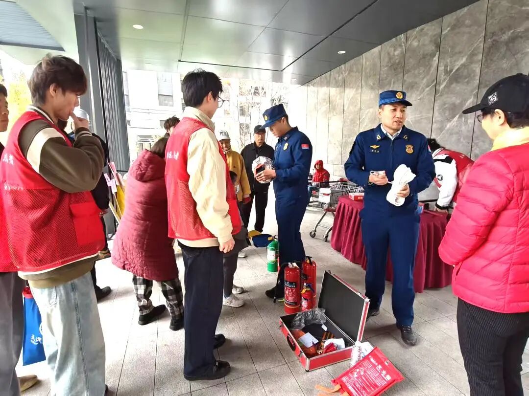 师生代表还与海泰大道消防站一起走进社区,将消防安全知识送到居民家门口。一堂生动实用的消防安全课在社区广场拉开,居民们围在身穿制服的消防员和师生身旁,认真学习日常生活中必备的消防知识。在灭火器体验环节,消防队员详细讲解了干粉、水基灭火器的使用方法,并指导居民亲手操作。“原来使用灭火器还有这么多讲究”,刚体验完的王大妈感慨道。“参与这样的活动,让我真切感受到了宣传消防知识的重要性和意义所在”,控制与机械工程学院大三学生曹嘉兴、苏瑞丰表示,“回学校后要继续向同学们宣传消防安全知识,共同防范安全风险。”消防站彭显超站长认为,高校师生参与消防宣传,为消防安全进社区工作注入了新的活力,带来了新思路、新方法,也为“消防-高校-社区”一体化共建,进一步筑牢安全防线奠定了良好的基础。