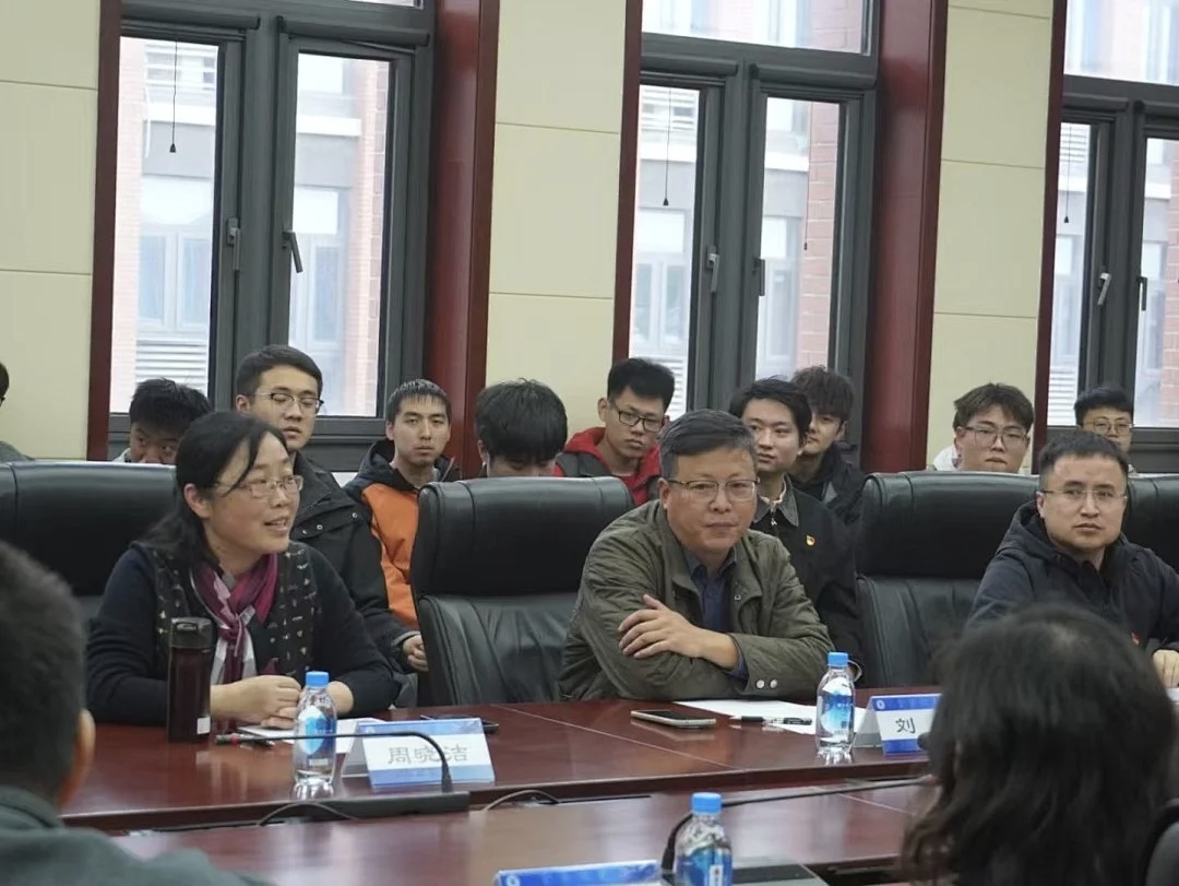 随后,双方围绕党建引领学科建设、科研合作与人才培养等议题展开座谈交流。与会人员共同学习了党的二十届四中全会精神,大家一致表示,要心怀“国之大者”,锚定“十五五”规划目标,强化使命担当,推动党建与业务双融双促。在交流环节,两院师生围绕导学思政、科研创新、就业引导等主题踊跃发言,现场气氛热烈。