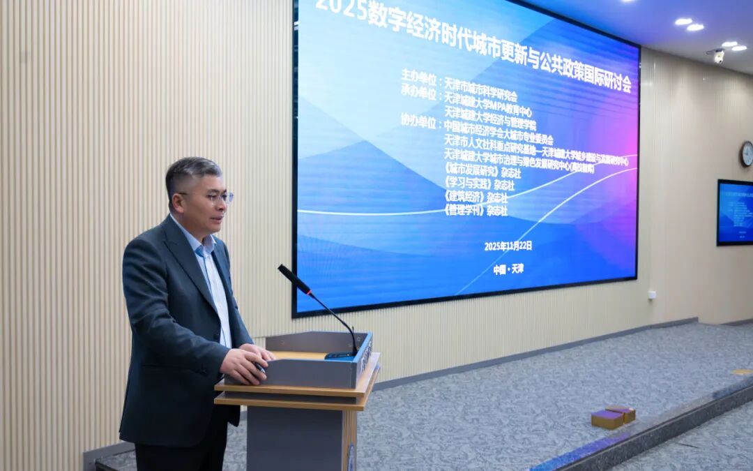 近日,由天津市城市科学研究会主办,天津城建大学MPA教育中心、天津城建大学经济与管理学院共同承办的“2025数字经济时代城市更新与公共政策国际研讨会”成功举办,我校校长王中良,天津市教委二级巡视员苏丹,天津市委宣传部理论处处长孙九一出席。开幕式由我校经济与管理学院院长王振坡教授主持。
