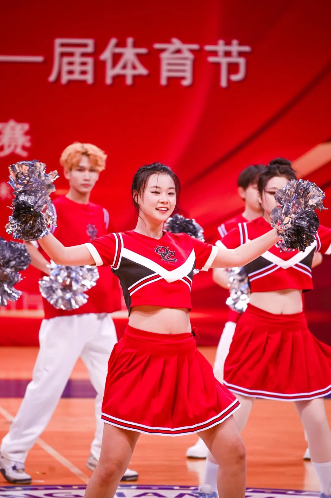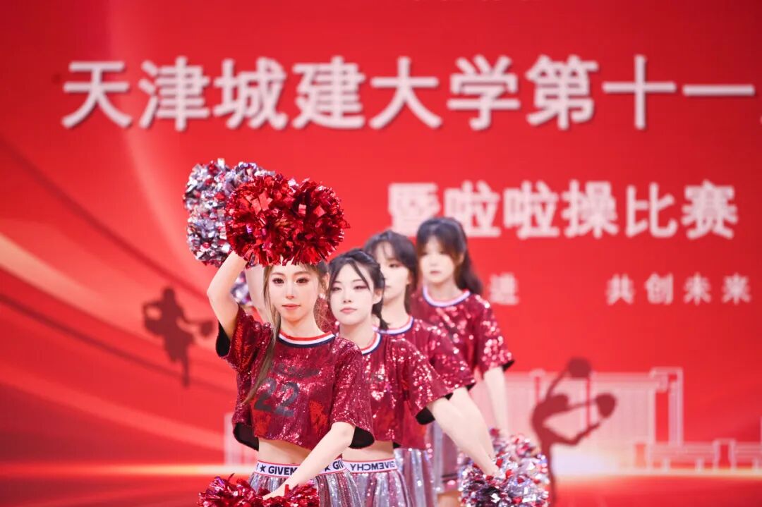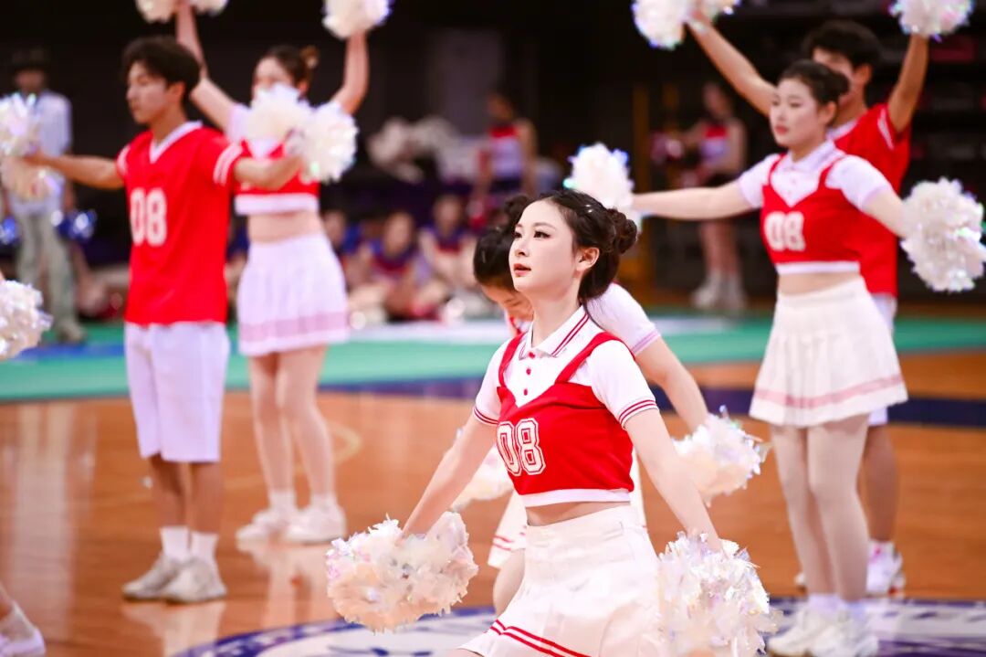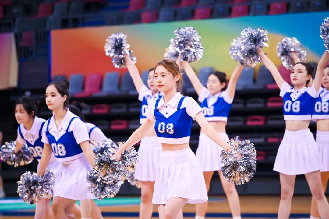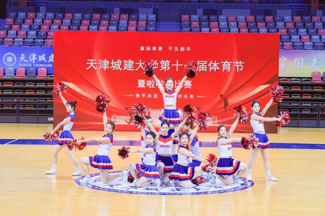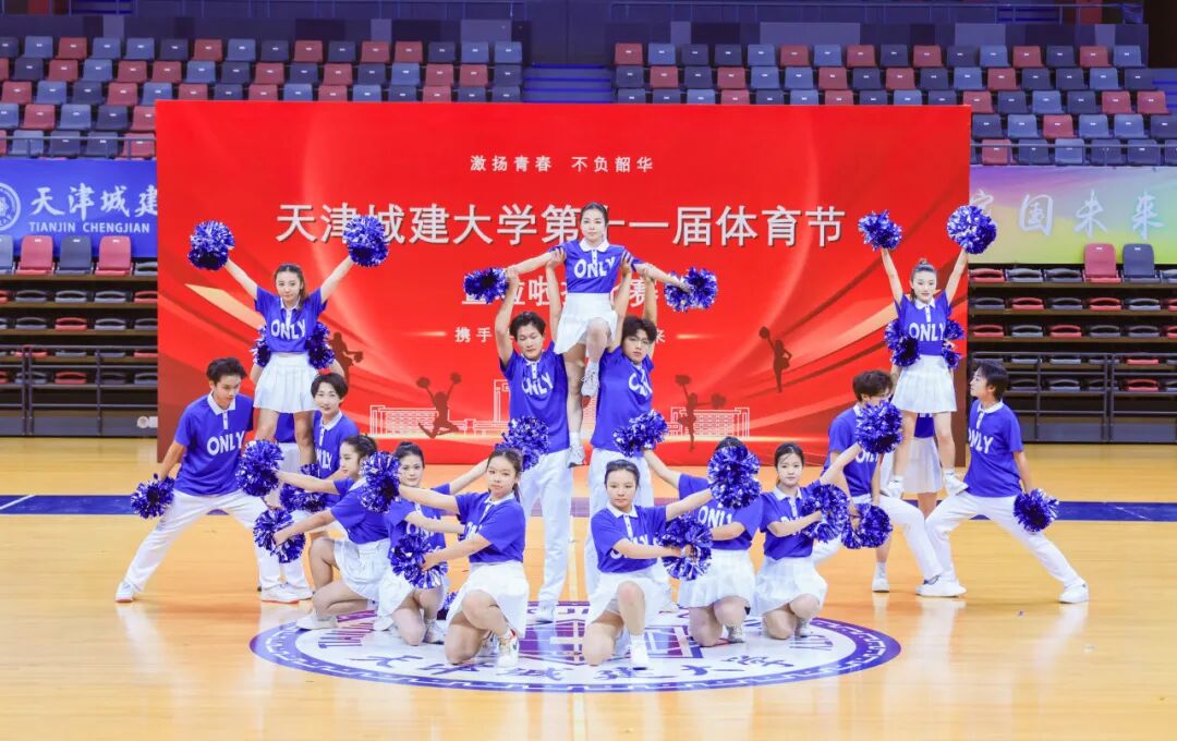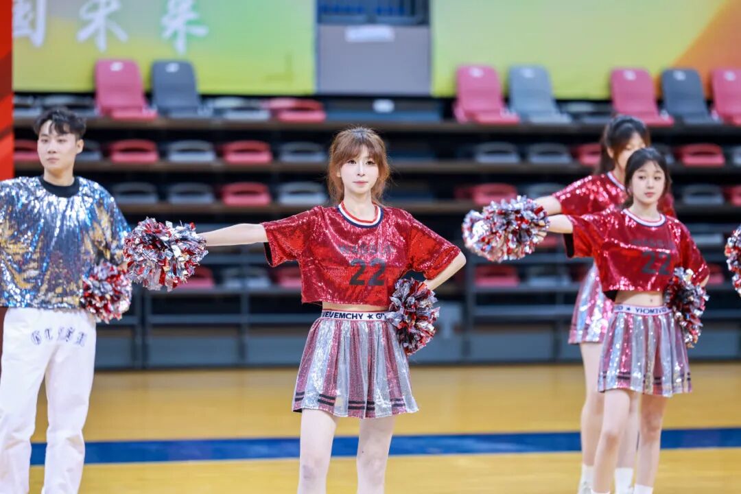 曾在“2025年天津市大中小学啦啦操比赛”中荣获冠军的CC-Rainbow彩虹啦啦队为师生带来精彩展演,既为观众呈现出独特的视觉体验,更将现场的热烈氛围推向高潮。