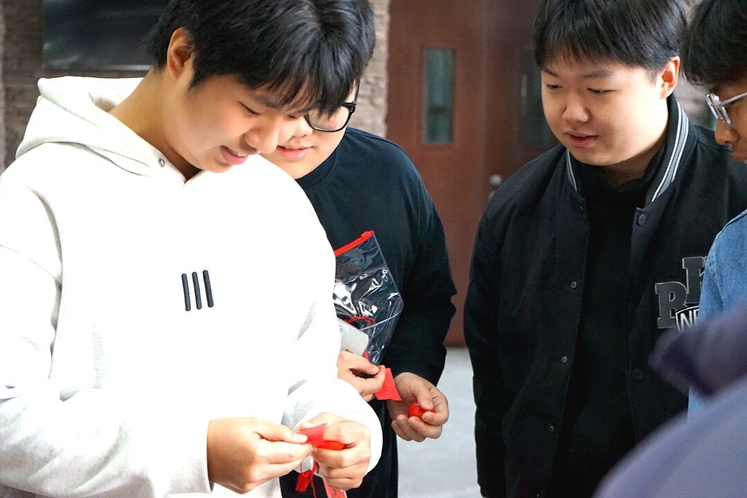 建筑学院将祝福融入实用好礼之中。暖手宝寓意“研”途温心,“连中三元”文具套装寄托下笔从容、金榜题名的期许,蒸汽眼罩助力学子明眸亮眼、思如泉涌。每一份伴手礼都搭配手写祝福书签,一字一句,皆是对学子落笔生花的殷殷期盼与美好祝福。