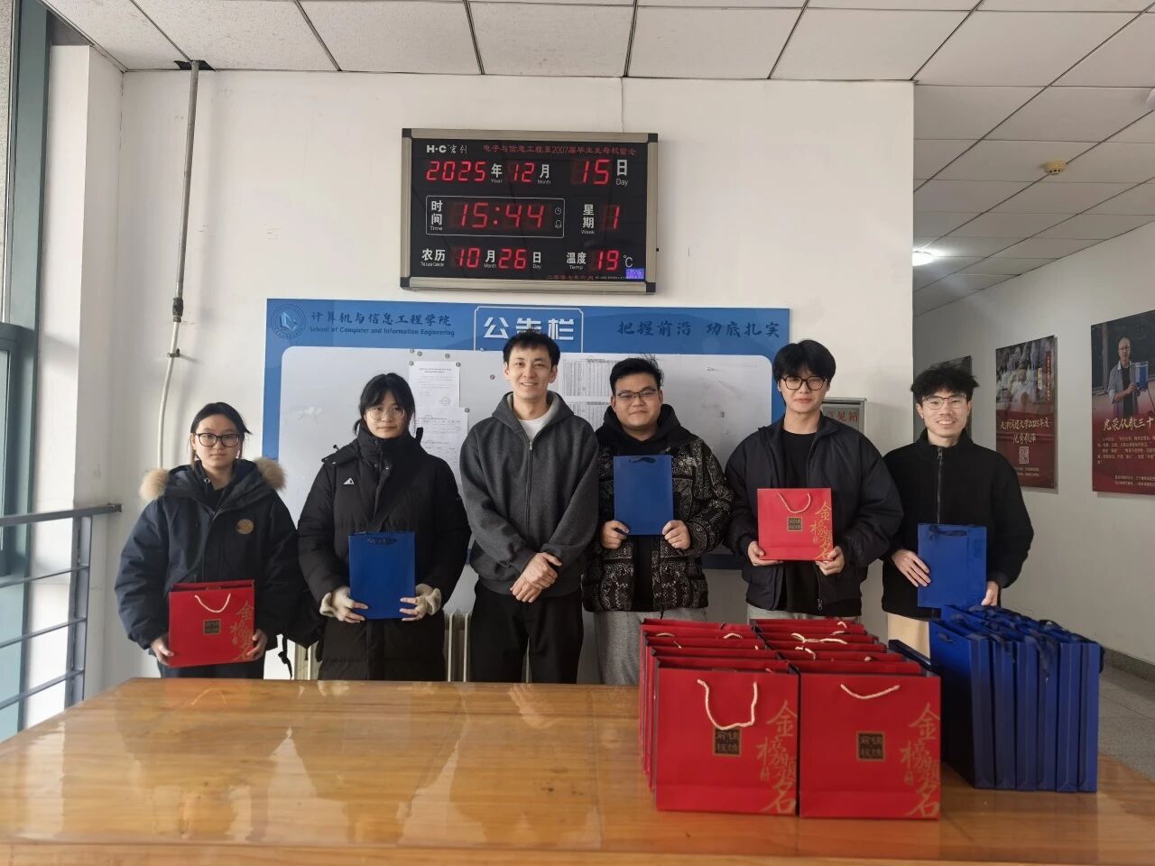 计算机与信息工程学院辅导员深入学生群体,通过谈心谈话了解大家备考进展,关注考前情绪,耐心疏导,鼓励大家劳逸结合、轻松应考。学院还精心举办考研助力活动,为考研学子送上加油礼包与福袋,内含实用文具和寓意美好的暖心礼物,承载着学院的殷切关怀,为寒冬备考注入暖意与力量。