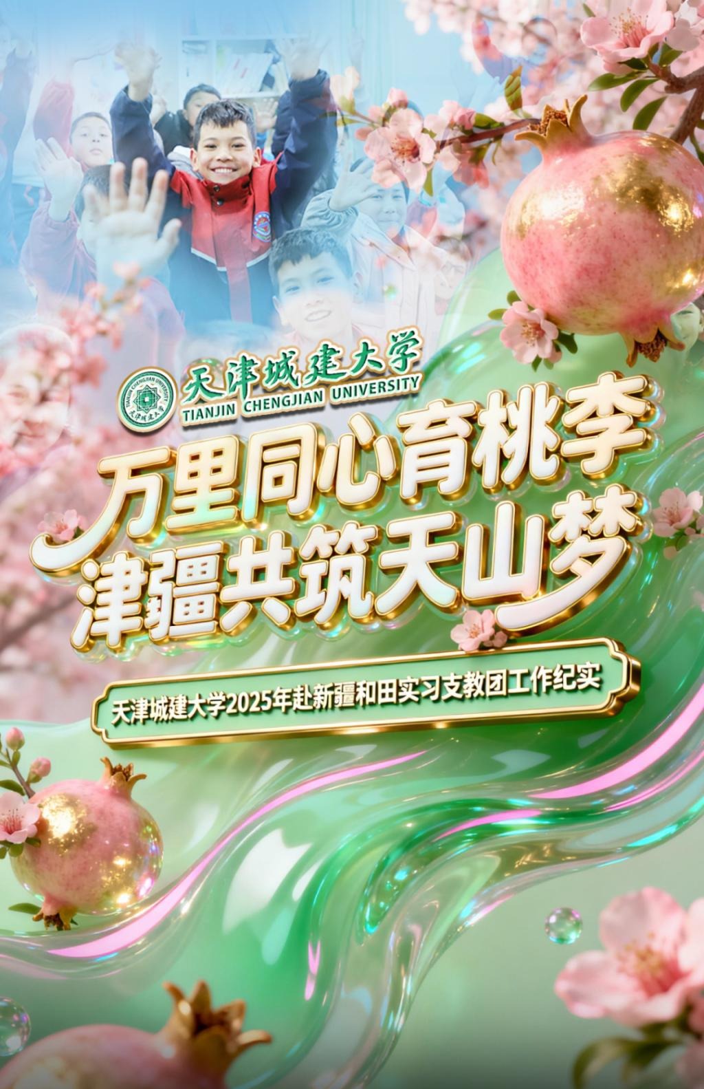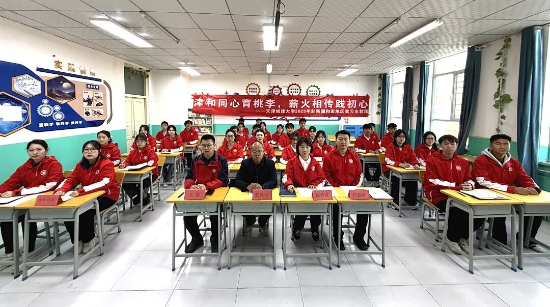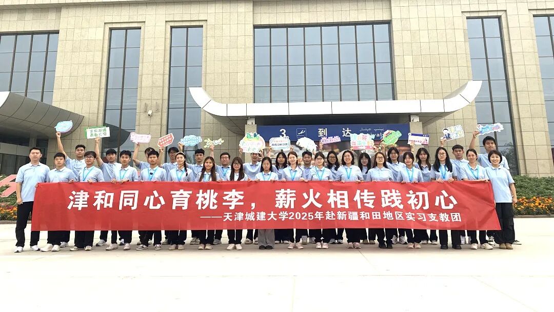 2025年,我校选派32名优秀师生参加天津市第十五批“金石榴”大学生西部支教团,奔赴和田地区于田县开展为期一学期的支教工作。支教团全体成员胸怀“国之大者”,以铸牢中华民族共同体意识为己任,躬身践行“重德重能 善学善建”校训精神,在南疆热土上书写新时代天城大青年的奋斗篇章。