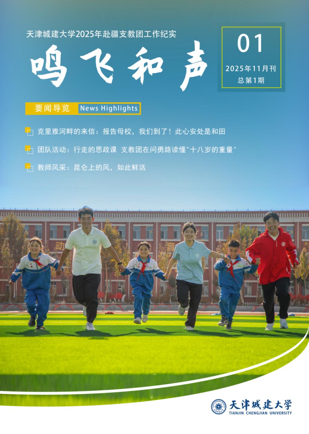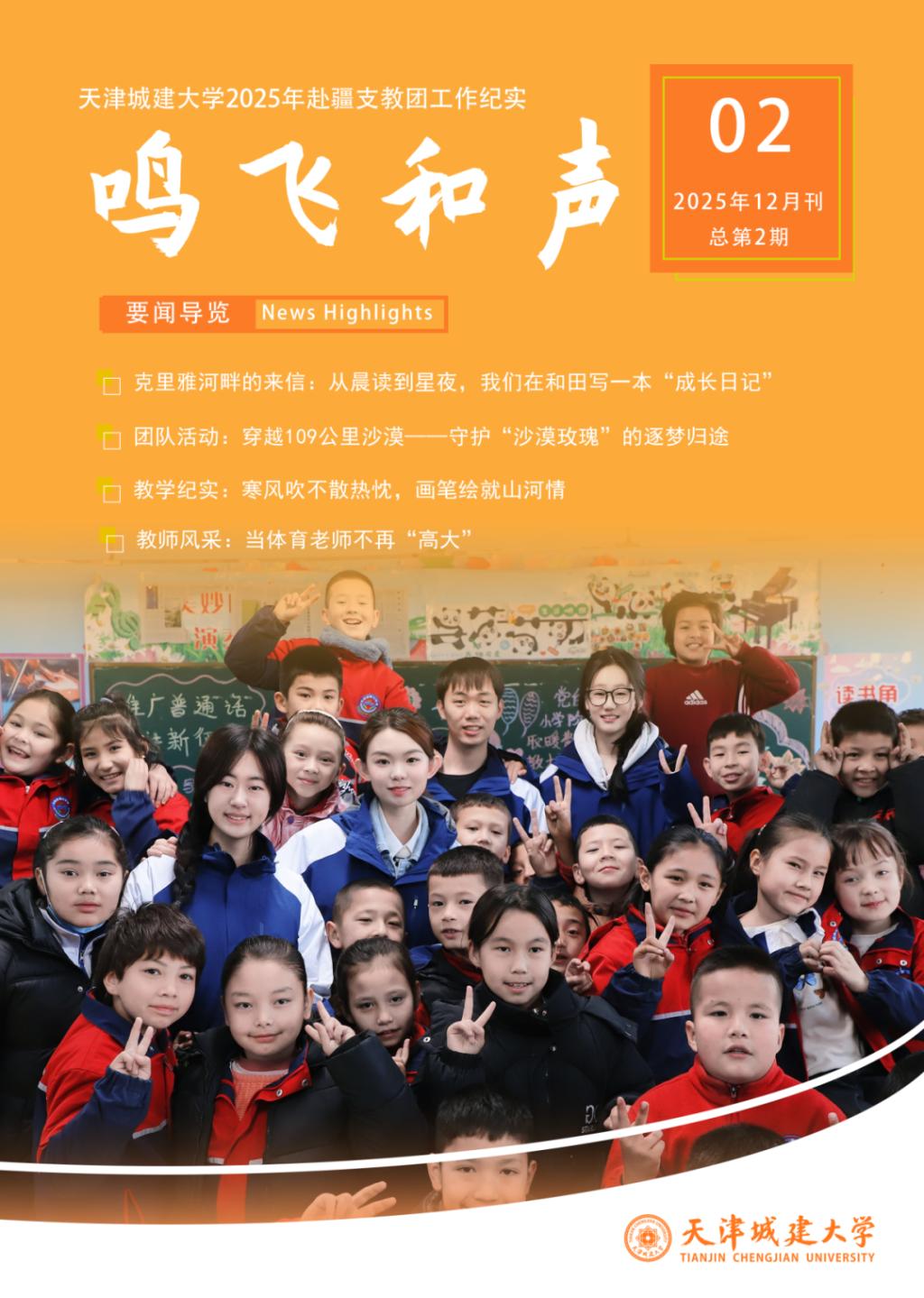 105个日夜的坚守与奉献,支教团交出了一份优异成绩单。在教学上,团队系统引入项目式学习、情境教学等模式,有效激发学生学习兴趣;在育人上,通过系列主题班会、文化讲座,有形有感有效铸牢中华民族共同体意识;在辐射带动上,积极搭建津疆学校交流平台,促成后续合作意向,受到当地师生一致好评;工作中形成3期《鸣飞和声》支教团工作纪实杂志,体育工作成果受到和田地区教育局表彰1次,系列支教工作被天津日报、贵港日报、于田融媒体等多家媒体报道,生动展现了天城大青年服务社会、投身教育的情怀与担当。