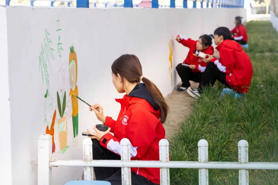 与先拜巴扎镇镇政府签署“乡村振兴教学实践基地”,走进其兰扎尔村,精心绘制了一幅长达35米的“美丽乡村”主题墙绘,用色彩为乡村振兴注入了青春动能。从最初的略显生疏到后来的从容自信,他们在三尺讲台上挥洒汗水,用实际行动诠释教书育人的初心使命,让知识的清泉滋润孩子们的心田,赢得了受援学校师生的一致好评。