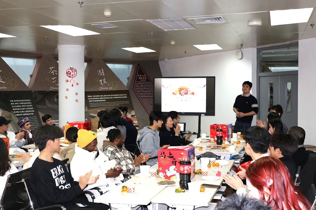 随后,活动进入了富有中国文化特色的环节。汉语言教师王佳乐为在场师生带来了一次生动有趣的“中国年俗文化小课堂”,她详细介绍了中国传统新年的贴春联、发压岁钱、包饺子、放鞭炮等习俗,深入浅出地展示了中华优秀传统文化的魅力,使中外学生对中华传统文化有了更为深刻的认识。