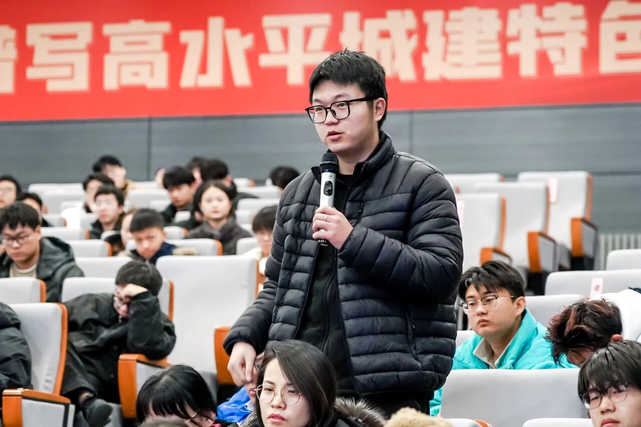 周绪红院士以“金属光伏屋面风荷载效应及抗风技术研究”为题作专题报告。报告聚焦沿海地区强风、台风频发的特殊环境,针对沿海低空经济基础设施的金属光伏屋面需求,系统剖析了复杂风场下屋面风荷载分布规律与抗风失稳关键机理,提出适配沿海场景的安全经济技术方案,为相关工程设计建造与运维提供了重要理论支撑和实践指引。现场师生围绕低空经济场景下钢结构轻量化与装配技术的核心痛点、创新方向及应用落地等关键议题展开深度交流。