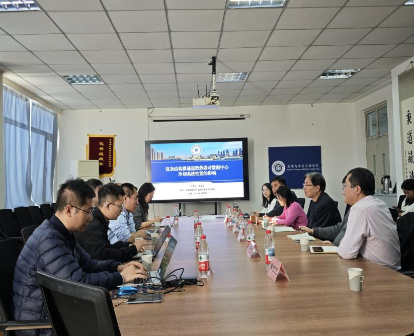 我校能源学院教师李艺凡介绍了课题组围绕微通道单相液冷和相变液冷特性开展的实验和数值模拟研究,主要包括多元微结构强化传热机理,数据中心液冷系统性能,相变液冷不稳定性调控,液冷蒸发冷复合冷却特性,复合纳米流体流动换热特性等。周斌博士介绍了课题组在目标通风系统方面的研究进展。聚焦气流组织机理,系统分析了同轴射流在动量传递、传热与传质过程中的优势。相关成果为高热密度空间气流组织与节能通风设计提供了有价值的参考。