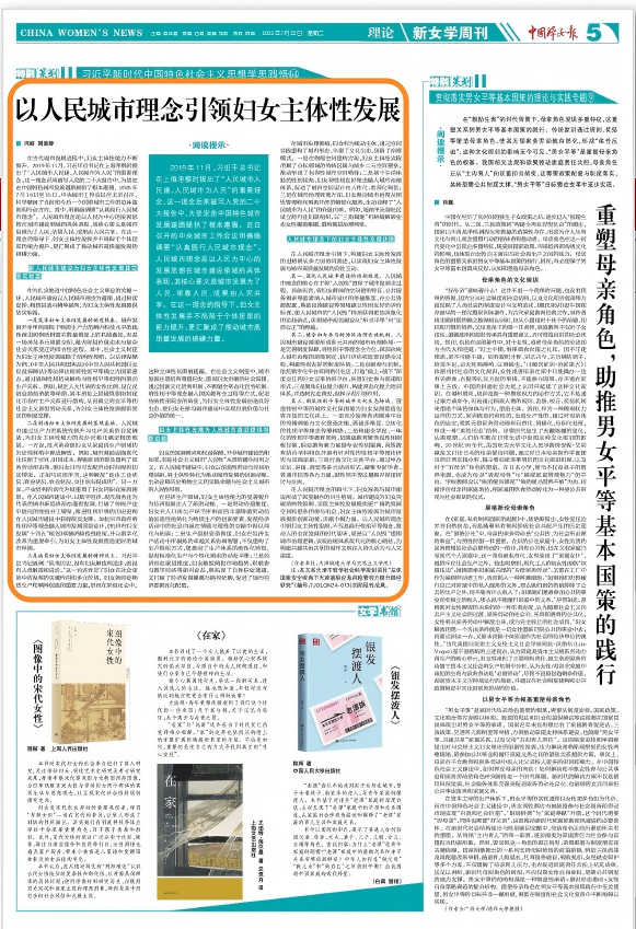 《中国妇女报》分别以《以巾帼之力推动基层治理现代化》《以人民城市理念引领妇女主体性发展》为题,刊发我校马克思主义学院教师闫妍、周淮娇的理论文章,具体如下: