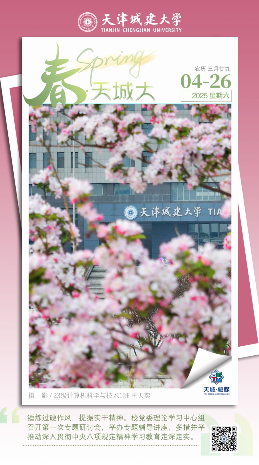 本次项目申报有着扎实的工作基础和探索实践。2025年,学校立足鲜明的城建学科特色,持续推动专业内涵与中华优秀传统文化相融合,深入挖掘二十四节气流转中蕴含的建筑美学与工程智慧,打造“四季·天城大”美图专栏,以镜头定格校园建筑随四时变换的光影意蕴,传递具有文化温度与仪式感的校园生活体验。在深厚文化底蕴与学科特色的交织中,天城大故事焕发出独特而鲜活的气质,相关栏目及原创致敬视频等内容受到广泛关注,视频号年度浏览量突破40万。