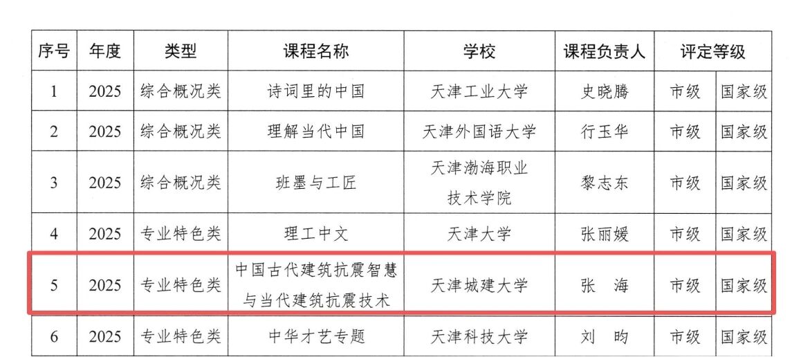 近日,中国教育国际交流协会公布了2025年度来华留学生“了解中国”优秀课程与中外青少年社会实践活动基地的评选结果。由我校土木工程学院张海教授团队牵头建设的专业特色类课程《中国古代建筑抗震智慧与当代建筑抗震技术》,成功入选2025年度国家来华留学生“了解中国”优秀课程,彰显出我校在来华留学生教育领域的创新探索与专业特色。