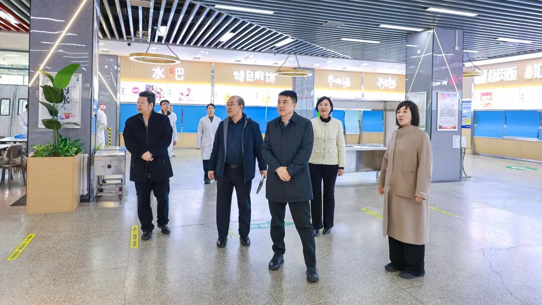 在第二学生食堂,校领导实地查看了假期食堂环境提升改造、餐饮服务保障、食品安全管理情况,详细了解了假期食堂多项安全改造与维保任务完成情况,查看了新学期物资储备、全流程食品安全管控及“明厨亮灶”工程落实情况。