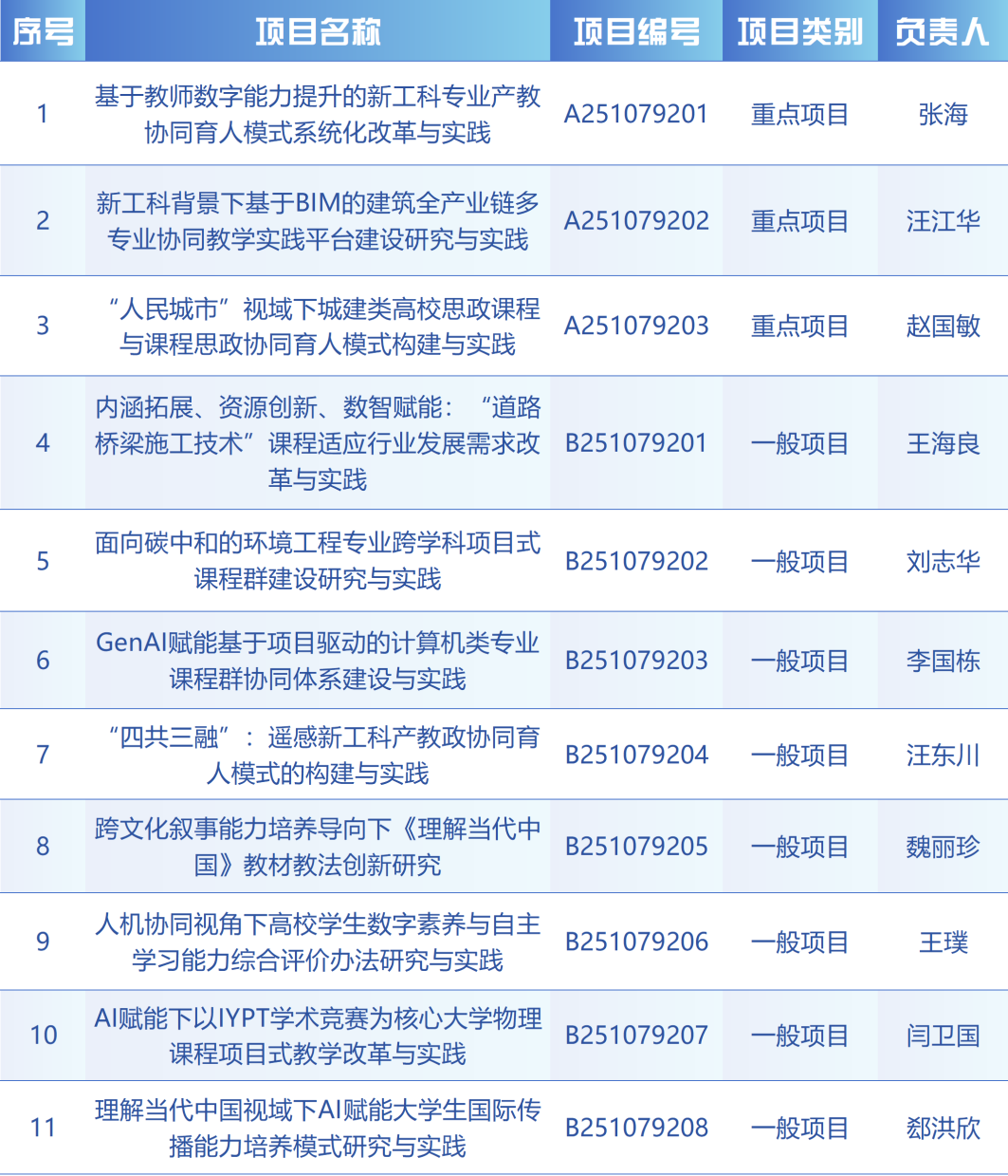 获批项目聚焦教育教学前沿与人才培养需求,围绕新工科专业建设、思政课程与课程思政协同育人、课程体系优化、人工智能赋能教育教学、理解当代中国外语教学研究等关键领域展开深入研究。项目选题精准对接国家战略需求和天津经济社会发展需要,充分体现了我校在深化教育教学改革、创新人才培养模式方面的前瞻布局与系统谋划。