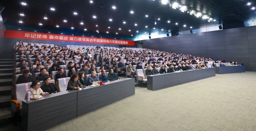 大会号召,全校上下要立足岗位、担当作为,以更加昂扬的精神状态、更加过硬的工作作风,紧紧扭住申博攻坚这条主线,进一步凝聚发展共识、明晰前进方向、激发内生动力,全面推进学校高质量发展,奋力谱写高水平城建特色大学建设新篇章。