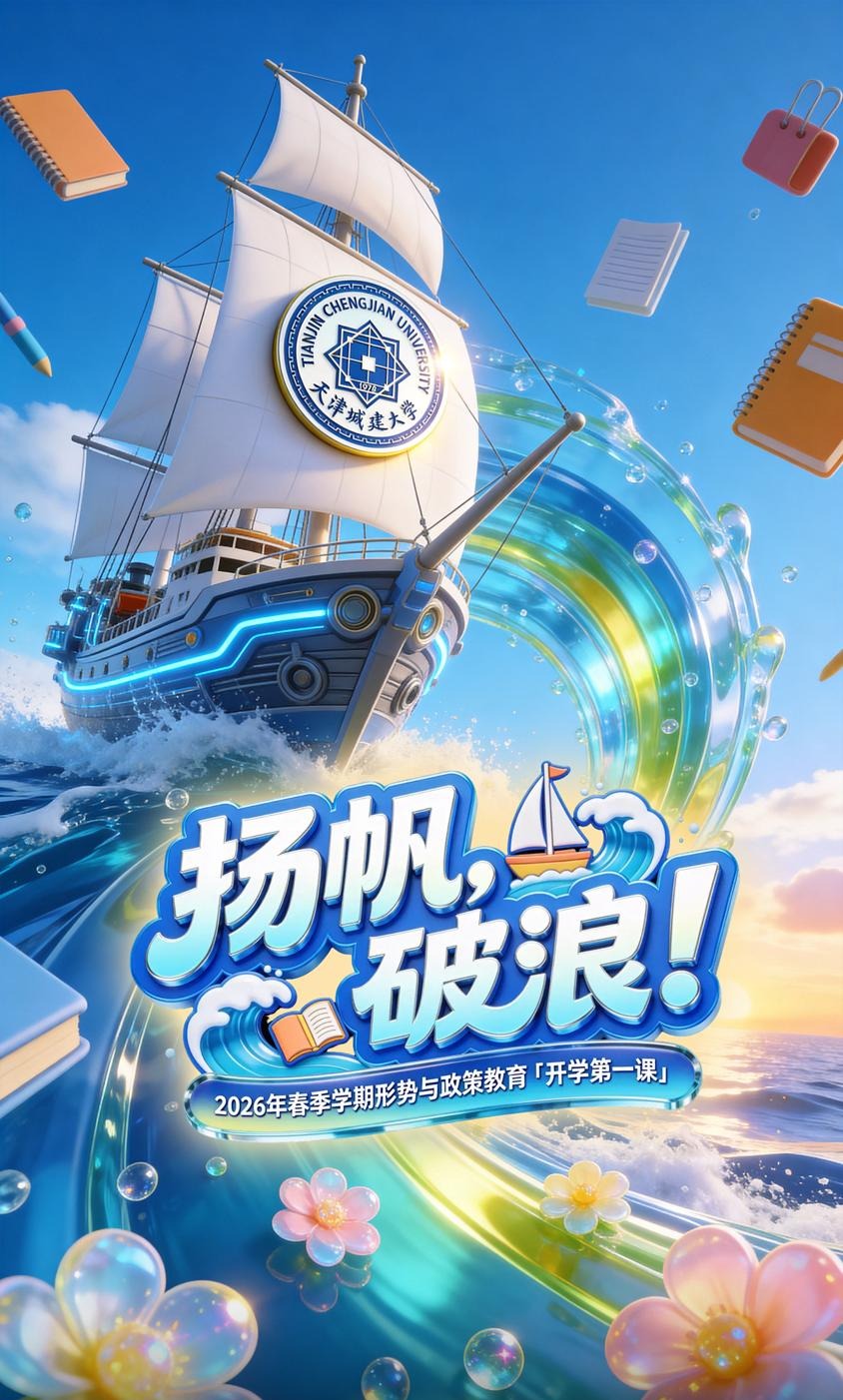 校党委书记史庆伟以“奋楫扬帆正当时 策马扬鞭向未来”为题,通过超星平台为全校学生讲授了一堂生动的“开学第一课”。他以时代聚势开篇,通过“中国之治”与“西方之乱”的鲜明对比,“人工智能+”、城市更新等国家战略与学校办学特色的高度契合,引导学生读懂两会之窗里的国家蓝图,坚定道路自信;以硬核答卷回应时代之问,细数学校博士点申报指标达标、科研经费突破2.3亿、国家级人才突破等“十四五”收官成绩,展现天城大服务国家战略的担当作为。