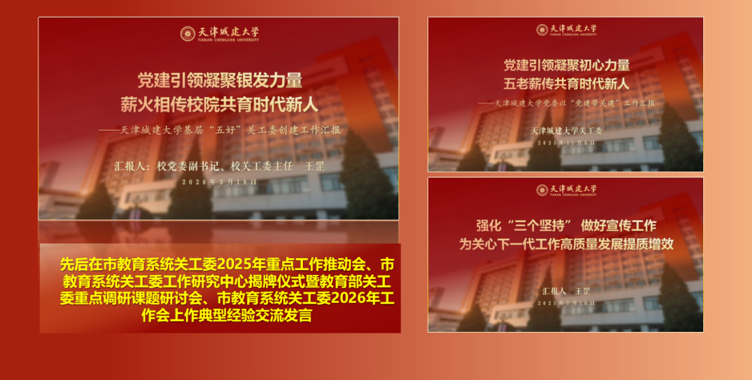 近日,天津市教育系统关心下一代工作委员会召开2026年工作会议。会上,6家单位关工委负责同志做经验分享。我校党委副书记、校关工委主任王罡以《党建引领凝聚银发力量 薪火相传校院共育时代新人》为题作交流发言,分享了我校在推动基层“五好”关工委创建中的经验做法和实际成效。