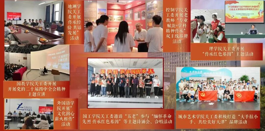 实施“五老”育人工程。打造“银龄铸魂”学生社区育人工程,通过开展“老少结对”“老少共话”“老少共读”等活动,构建结对式、阶梯式育人体系,助力学校“一站式”学生社区建设取得新成效——学校连续三年获评天津市“一站式”学生社区“A”级,并于2025年入选全国首批百强高校示范“一站式”学生社区。