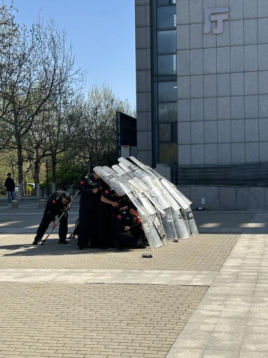 学校安工部在第二食堂组织开展了反恐防暴应急演练。本次演练模拟“不法分子”强行闯入的突发场景,食堂工作人员迅速启动应急预案,一边有序疏散就餐师生,一边第一时间向学校安保指挥中心报警。接到指令后,校园安保力量携带防护器械火速抵达现场,与及时赶到的辖区学苑派出所民警紧密配合、协同处置。通过战术合围与规范操作,最终成功将“暴徒”制服并带离。整个演练过程紧张有序,各部门响应迅速、配合默契。通过实战演练,有效检验了学校反恐防暴应急预案的可操作性,切实增强了食堂、安保等一线工作人员的应急反应、先期处置和联动协同能力,为营造更加安全稳定的校园环境积累了宝贵经验。