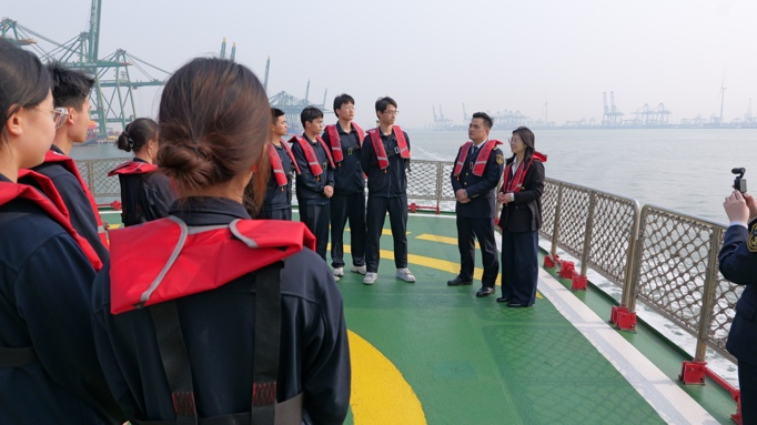 在学工部、马克思主义学院组织下,一堂别开生面的“国家安全沉浸式体验课”在天津东疆海事局“卫海锋舟”水上安全教育实践基地开讲。师生们走进立体巡航监控中心,感受信息化动态监管网络;参观溢油应急设备库,了解海洋污染防治知识;登上海巡船开展“双师同堂”实地教学,深刻体会“海洋是国家安全的重要屏障”。这堂以“守护蓝色国土,探寻‘人民城市’安全密码”为主题的实践课,让国家安全观更加可知可感。