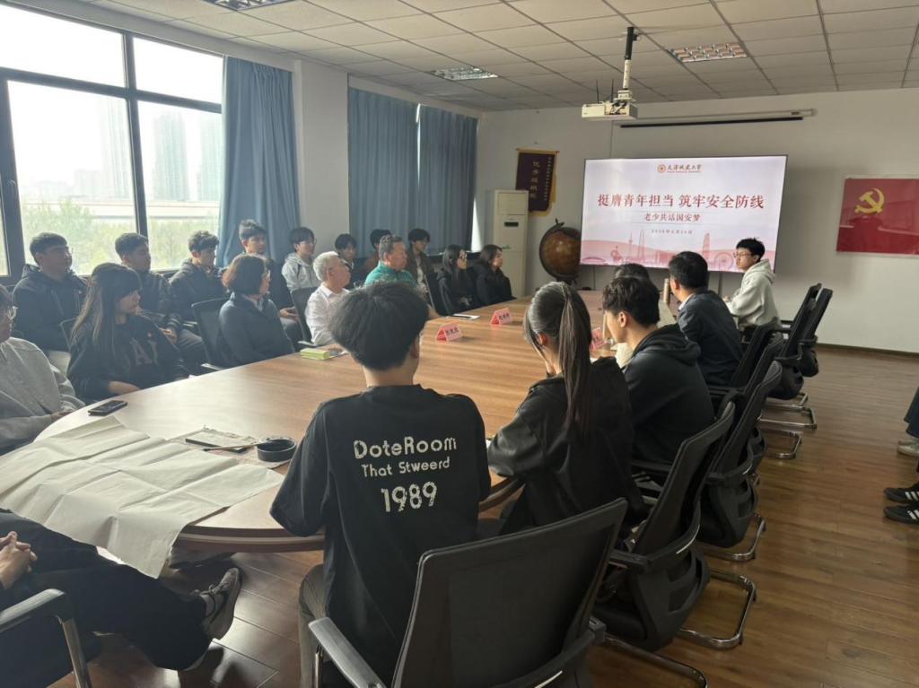 能源与安全工程学院关工委组织开展“老少同心筑安全”系列活动,通过老少共观影、座谈交流、知识竞答与艺术创作等形式,搭建两代人的思想对话平台,推动“大安全”理念深入人心。学生党员与退休老党员共同观看国家安全题材影片《惊蛰无声》,从贴近日常的情节中体悟维护国家安全是每位公民的责任。座谈会上,关工委委员赵海燕、任绳凤与同学们围绕“国家安全在身边”展开交流,凝聚维护安全的共识与使命感。活动还设置国防安全知识竞答,现场气氛热烈。学生党员创作了剪纸、书法作品,以“挺膺青年担当,筑牢安全防线”等主题,抒发了守护家国的信念,勾勒出“老少同心、共护国安”的生动画面。
