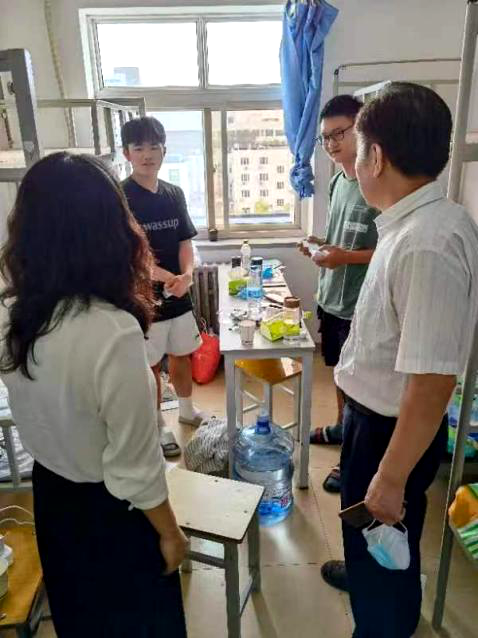 国际工程学院领导班子带领辅导员深入学生宿舍,与学生面对面交流了解学生思想动态和实际困难,查看在校学生的网课学习情况。针对学生的诉求和困难,一对一提出解决办法,帮助协调解决学生关切的问题,叮嘱学生返乡途中注意安全,做好个人的防护,假期要持续保持良好生活习惯,遇到困难及时联系学院老师。