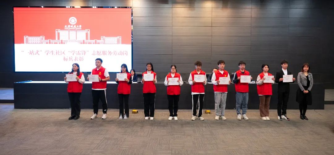 校团委书记孙旭卓为“一站式”学生社区“学雷锋”志愿服务岗标兵颁发证书。充分发挥榜样示范引领作用,坚持自我教育、自我管理、自我服务育人理念,引导同学们实现由“要我干”向“我要干”的转变,将“雷锋精神”学在经常、悟在经常、做在经常。