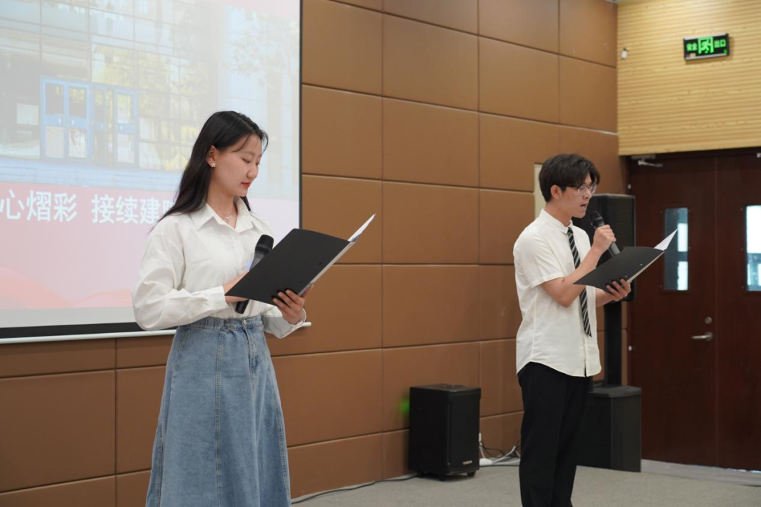 建筑学院党委书记杨振舰宣传建筑文化节开幕。与会嘉宾一同为建筑学院第九届建筑文化节进行剪彩,预祝建筑文化节圆满成功。21级建筑学专业学生马思政、车丁以《筑梦匠心熠彩 接续建院荣光》为题进行朗诵。他们用青春、笃定的语言,礼赞党的二十大,致敬学院发展史,彰显建筑学子风采。